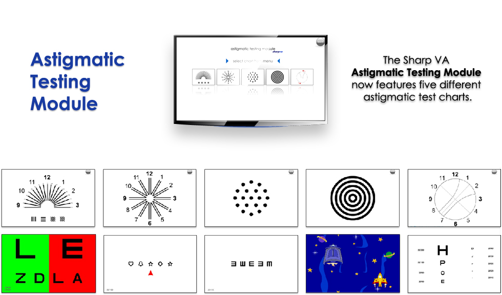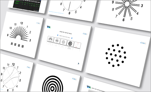 [click each module below for additional info] Digital Visual Acuity Module Color Vision Testing Module Visual Fields Module Patient Education Module Macular Function & Integrity Module Astigmatic Testing Module Sports Vision/VT Module Low Vision Module Clinical Data Module Miscellaneous Tests and Charts |
