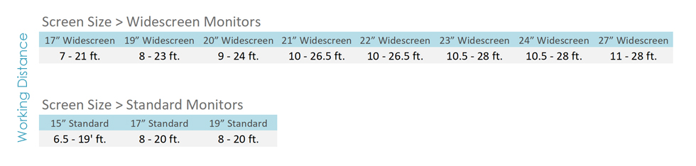 Monitor size limitations have been imposed to protect the quality and accuracy of our system. We have done extensive clinical research on our software, and the effects of different monitor sizes and working distances. We have found that with certain patient types (corneal issues, cataracts, amblyopia), too much blank white space on a screen can induce veiling glare, thus reducing one's measured visual acuity. For example, if you have a very small exam room, there will be an upper limit on the monitor size you can use. This limit has been imposed to prevent veiling glare in certain patient populations. At the same rate, a very small monitor with a large working distance may be too small to present larger optotypes. Please follow the referenced guidelines, and feel free to contact us with any questions.